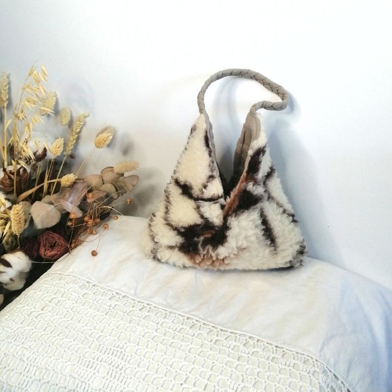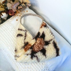 Succombez au charme de ce mini sac à main, une pièce unique et éco-responsable qui allie la douceur d'une "fourrure de laine" à la robustesse du lin.