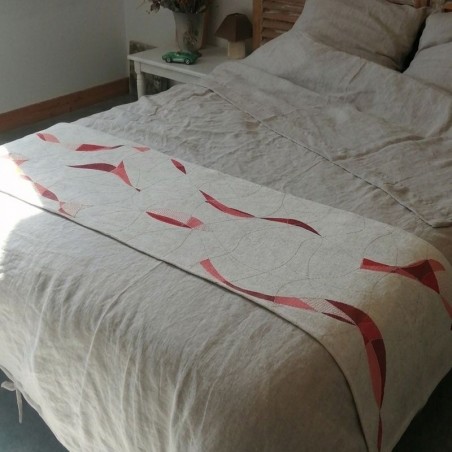 Chemin de lit en lin peint & brodé