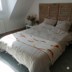 N'hésitez pas à me contacter si vous souhaitez une variation de couleur ou de dimensions pour ce chemin de lit. Je suis là pour vous conseiller et vous accompagner dans votre choix afin de vous offrir le produit idéal.