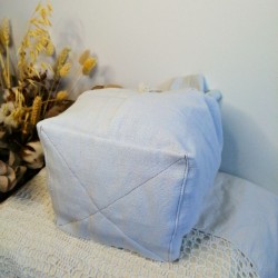 Ce sac à lingerie est confectionné à partir d'un drap ancien upcyclé, un tissu en coton de qualité, teint d'un délicat gris perle.